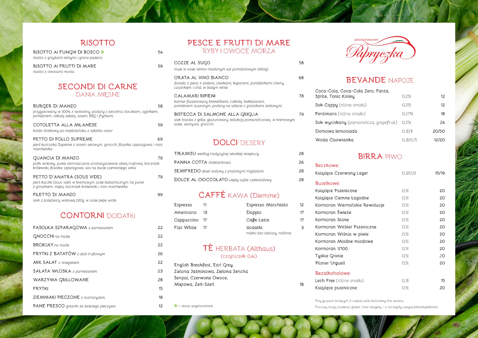 Menu w lokalu